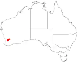 Редкий вид, произрастающий на юго-западе Западной Австралии в районе Бруктона, Кандердина, Мерредина, Таммина и Куэйрадинга. Растёт на песчаной суглинистой почве на пустошах и открытых кустарниковых экосистемах. Требует солнечного света и хорошего дренажа. Растение морозоустойчивое и засухоустойчивое[4][5][9].