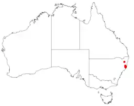 Ареал вида ограничен окрестностями городов Тари и Вочоп на северо-востоке Нового Южного Уэльса. Растёт во влажных склерофитовых лесах и в тропических лесах на склонах холмов[4].