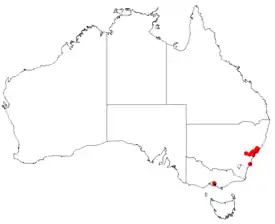 Произрастает на пустошах, в склерофитовых лесах и в сухих лесах на побережье и в окрестностях Нового Южного Уэльса между Ньюкаслом и Гленори[8].
