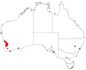 H. erinacea эндемична округа Юго-Западный Западной Австралии. Растёт на песчаных суглинках, глине и латеритовом гравии на прибрежных равнинах и на хребте Дарлинг к северу от Перта[6].