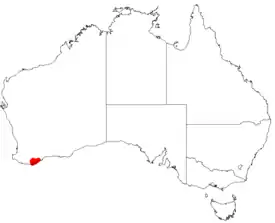 | Ареал Hakea lasiocarpha. | ||||||||