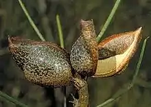 - Hakea leucoptera sericipes с блестящими белыми или коричневыми и прижатыми волосками[16].
