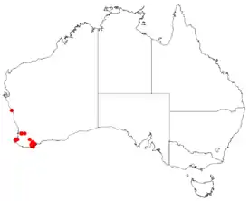 | Ареал Hakea oldfieldii. | ||||||||||