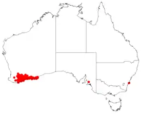 | Ареал Hakea pandanicarpa. | ||||||||||