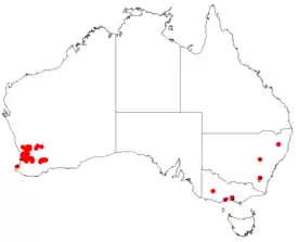 - Hakea petiolaris angusta известен только из нескольких небольших популяций, растущих вокруг гранитных обнажений вблизи Пингаринга в биогеографическом регионе Мелле округа Уитбелт[16].