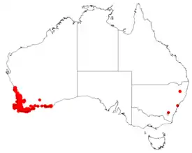| Ареал Hakea ruscifolia. | ||||||||||