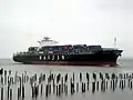 Гружёный контейнеровоз выходит из порта Puget Sound