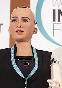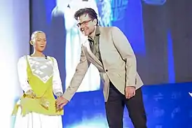 ![]() Дэвид Хэнсон на презентации робота Sophia | |