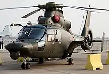 Harbin Z-9 — китайский многоцелевой вертолёт. Является лицензионной копией французского вертолёта Aérospatiale Dauphin. Поступил на вооружение НОАК в 1998 году[5]. Модификация Z-9W (WZ-9) стала первым противотанковым вертолётом, построенным в Китае.