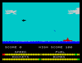 Игрок управляет истребителем-бомбардировщиком «Си Харриер». Задача — взлететь с авианосца, атаковать наземные и надводные цели противника и успешно вернуться из боевого вылета. Для поражения целей самолёт несёт ограниченный запас ракет класса «воздух—воздух» и авиабомб. Запас топлива также ограничен. Со стороны противника угрозу представляют зенитная артиллерия, корабли (несущие зенитные ракеты) и самолёты противника. Наиболее опасны самолёты, которые часто прячутся в облаках, что позволяет им неожиданно атаковать «Си Харриер», а иногда приводит к столкновению.