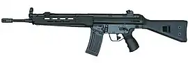 Конструктивно идентична автоматической винтовке HK 33. Принцип работы основан на автоматике с полусвободным затвором и схемой с роликовым запиранием канала ствола, унаследованной у армейской штурмовой винтовки HK G3. Оснащается встроенным пламегасителем.