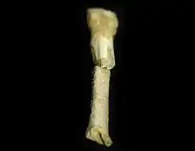 Фаланги кисти — средняя и концевая — довольно специфичны. Средняя очень большая, изогнутая, сжатая по вертикали, с мощными местами прикрепления сгибателей и выступами на тыльной стороне основания и головки, с резким сужением перед головкой. Концевая фаланга кисти меньше, чем у людей, хотя и превосходит хоббичью, очень тонкая, стройная, опять же по форме напоминает человеческую, но с загнутой головкой, как у австралопитеков[1].