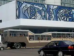 Общественный автобус Гаваны возле фрески Амелия Пелаеса