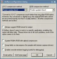 Huffyuv (или HuffYUV) — кодек, предназначенный для сжатия видео без потерь. Создан Ben Rudiak-Gould, в целях замены несжатого YCbCr как формата видео захвата. Несмотря на «YUV» в названии, он использует цветовое пространство не YUV, а YCbCr. «Без потерь» означает, что результат декомпрессии бит-в-бит идентичен исходному потоку перед компрессией (при условии, что не проводилось преобразование цветового пространства). Алгоритм Huffyuv предсказывает каждый пиксель кадра и затем кодирует ошибку по алгоритму Хаффмана.