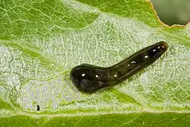 Личинка пилильщика Caliroa cerasi, который Линней в 1758 году назвал Tenthredo cerasi.