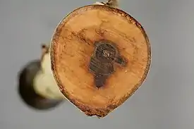 ![]() Срез ветви ясеня, поражённого Hymenoscyphus fraxineus | ||||||||