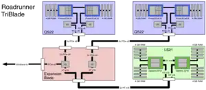 Специально для суперкомпьютеров IBM Roadrunner выпускался четырёхслотовый модуль TriBlade, в одном отсеке которого устанавливалась Opteron-машина серии LS, в двух отсеках — два расширения QS на процессорах Cell, четвёртый отсек занимал коммутатор Infiniband 4X. Три модуля TriBlade устанавливались в одну корзину BladeCenter H.