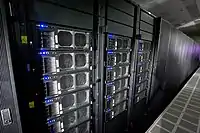 Roadrunner — суперкомпьютер в Лос-Аламосской национальной лаборатории в Нью-Мексико (США). Разработан в расчёте на пиковую производительность в 1,026 петафлопса (достигнута в июне 2008 года) и 1,105 петафлопса (ноябрь 2008 года). Был самым производительным суперкомпьютером в мире в 2009 году. IBM разработала этот компьютер для Министерства энергетики США по гибридной схеме из 6480 двухъядерных процессоров AMD Opteron и 12 960 процессоров IBM Cell 8i в специальных стойках TriBlade, соединённых с помощью Infiniband.
