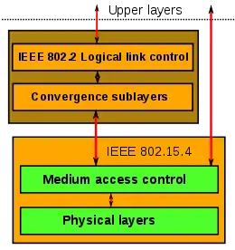Стандарт IEEE 802.15.4-2003 обеспечивает низкую скорость передачи данных в совокупности с очень длительным временем автономной работы (месяцы и даже годы) и низкой сложностью устройств. Стандарт определяет как физический (уровень 1), так и канальный (уровень 2) уровни модели OSI. Первая версия стандарта 802.15.4 была выпущена в мае 2003 года. Некоторые стандартизированные и проприетарные протоколы сетевого уровня работают над 802.15.4-сетями (IEEE 802.15.5, ZigBee, 6LoWPAN, WirelessHART и ISA100.11a).