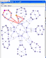 Первая из них (рисунок 5) демонстрирует маршрутизацию в 66 узлах сети, где мы создали 7 задействованных E-LAN, используя ISID 100. В этом примере мы показываем дерево ECT, создаваемое от каждого участника, чтобы достигнуть всех других элементов. Мы циклически повторяемся через каждый элемент, чтобы показать полный комплект деревьев, создаваемых для этой службы. Мы приостанавливаемся однажды, чтобы показать симметрию маршрутизации между двумя из узлов и подчеркнуть его красной линией. В каждом случае источник дерева выделен с маленьким фиолетовым V.
