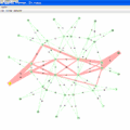 Вторая анимация (рисунок 6) демонстрирует 8 путей ECT в тех же 66 узлах сети как рисунок 4. В каждом последующем анимированном фрейме используется тот же источник (показано фиолетовым), но различное место назначения (показано жёлтым). Для каждого фрейма все кратчайшие пути показаны наложенные между источником и местом назначения. Когда два кратчайших пути пересекают тот же транзитный участок, толщина проведенных линий увеличена. В дополнение к 66 узлам сети есть маленький многоуровневый Data Center сети также показан с источниками и местами назначения обоих в серверах (в нижней части) и от серверов до уровня маршрутизатора наверху. Эта анимация помогает показывать разнообразие производимого ECT.