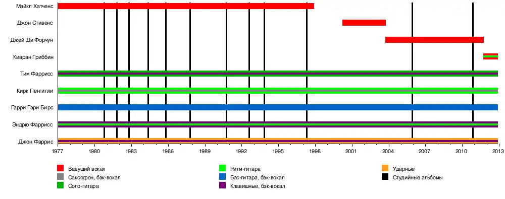 Майкл Хатченс Тим Фаррисс Кирк Пенгилли Гарри Гэри Бирс Эндрю Фаррисс Джон Фаррисс Джон Стивенс Джей Ди Форчун Киаран Гриббин |