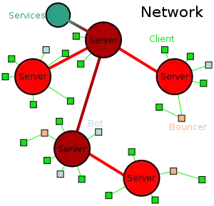 Согласно спецификациям протокола, IRC-сеть — это группа серверов, соединённых между собой. Простейшей сетью является одиночный сервер.