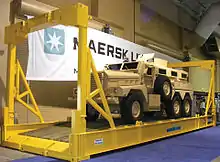 - FR (Flat Rack) — контейнер-платформа с боковыми стенками для негабаритных грузов и упрощения их загрузки. Максимальная открытость этого контейнера позволяет сокращать время при погрузочно-разгрузочных работах и производить их любым видом техники: от автопогрузчика до башенного крана. Такие контейнеры используются при перевозке больших модульных конструкций, спецтехники, военной техники, крупного производственного оборудования и т.д.. Flat Rack контейнеры существуют в модификациях:
