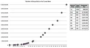 К февралю 2010 года магазин суммарно продал 10 миллиардов песен:[3] Сейчас в нем доступно: