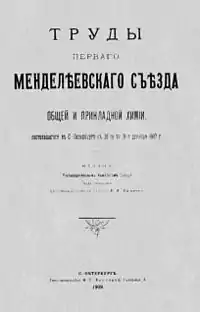 - Труды I Менделеевского съезда по общей и прикладной химии, состоявшегося в Петербурге с 20 по 30 декабря 1907 года. ЖРФХО, 1909, 41, вып. 2