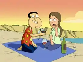 - Влюбленный Куагмир представляет себя поочерёдно героем мультфильмов Диснея, повторяя знаменитые сцены: танец из «Красавицы и Чудовища» (англ. Beauty and the Beast, 1991), ужин с одной спагетти и поцелуем из «Леди и Бродяги» (англ. Lady and the Tramp, 1955), и полёт на ковре из «Аладдина» (Aladdin, 1992).