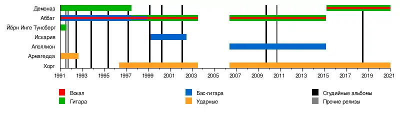 - Арес (англ. Ares), Ронни Ховланд (норв. Ronny Hovland)) — бас (1998)