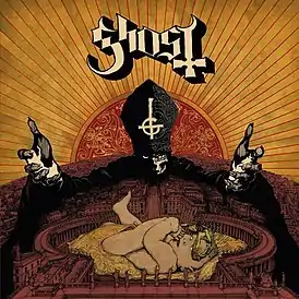Infestissumam (рус. Самый враждебный) — второй студийный альбом шведской хэви-метал-группы Ghost, выпущенный 10 апреля 2013 года. В США альбом вышел 16 апреля из-за конфликта с производителями компакт-дисков, отказавшихся печатать часть оформления для делюкс-версии[19][20]. В японском издании в трек-лист альбома добавились каверы на песни «Waiting for the Night» группы Depeche Mode и «I’m a Marionette» группы ABBA, записанный при участии Дэйва Грола, участника таких групп как Nirvana и Foo Fighters. Альбом получился успешным: за первую неделю в США было продано более 14’000 копий, таким образом «Infestissumam» дебютировал на 28 позиции в чарте Billboard 200[21][22] и лидировал в сайте «Billboard Hard Rock Albums»[23].