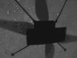 По-разному формируются и основные критерии подобия, используемые в таких противопоставлениях: число Маха и число Рейнольдса. Особая геометрия лопастей, максимально использующая потенциал подъёмной силы марсианского вертолёта, была обоснована ещё в 1997 году[28]. Однако их радиус и скорость вращения винта нельзя наращивать беспредельно: кончики лопастей не должны двигаться быстрее скорости звука, иначе нарастание механических вибраций и резонанс разрушат аппарат. По расчётам (на Земле испытания на разрушение аппарата не проводились) Ingenuity выходит на 0,8 Маха при 2800 об./мин[25]. На этот предел пришлось выйти уже в сентябре 2021 года[29]