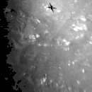 При недостаточной точности измерений, получаемых от средств инерционной навигации, в отсутствие средств регистрации местоположения вертолёта в полёте реконструкция его движения производится на Земле по послеполётным фотографиям[24]. Важную роль в определении местоположения вертолёта в пространстве играют размеры и форма отбрасываемой им тени, а также её местоположение на снимке. Так, из того, что панель солнечной батареи вытянута вдоль самых длинных (195 мм) граней фюзеляжа и продольной оси вертолёта, следует: если фюзеляж развёрнут к объективу одним из бортов, то солнечная панель будет просматриваться на кадре, как самый широкий после лопастей элемент общего контура вертолёта. По своей ширине солнечная батарея, а также «передняя» и «задняя» грани фюзеляжа (163 мм) примерно равны, так что в проекции панель полностью перекрывает фюзеляж в виде сверху или снизу[8].