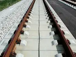 Для высокоскоростных трасс используются также контактные провода из специального сплава, улучшающего контакт и уменьшающего искрообразование. Контактные провода имеют очень высокое натяжение с целью предотвращения колебаний под воздействием ветра и воздушных потоков от проезжающих поездов.[33]