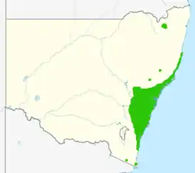 Эндемик Австралии. Встречается вдоль восточного побережья Нового Южного Уэльса, от границы с Викторией почти до (и, возможно, достигая) Квинсленда. Чаще всего встречается между мысом Смоки и Улладуллой. В окрестностях Торрингтона в районе Новой Англии описана отдалённая популяция[3]. В естественных условиях вид встречается на высоте от уровня моря до 1200 м на почвах из песчаника с низким содержанием питательных веществ на пустошах и в сухих склерофитовых лесах, особенно вдоль хребтов или вершин холмов[12]. Типичные лесные деревья, с которыми он ассоциируется, включают Eucalyptus haemastoma и E. sclerophylla, E. conceniana, Corymbia eximia, C. gummifera и Angophora costata и растения, такие как Banksia oblongifolia, B. paludosa, Lambertia formosa, Petrophile pulchella, Kunzea ambigua, Allocasuarina torulosa и Hakea laevipes[12].