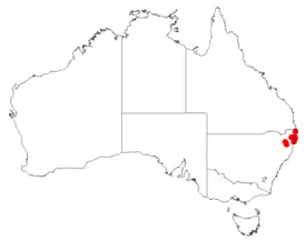 Эндемик Австралии. Встречается только на северо-востоке Нового Южного Уэльса в окрестностях Графтона, где растёт вдоль побережья к востоку от Ангури на юг до Минни-Уотер и района Колдейл[3]. Произрастает на глинистых или песчаных почвах, в открытых пустошах или на опушках лесов[4].