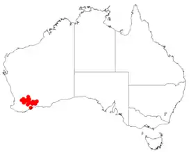 | Ареал Isopogon pruinosus | ||||||||