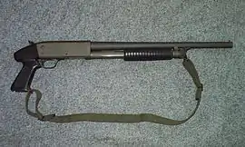 - Stakeout — модель с укороченным до 330 мм стволом и пистолетной рукоятью;