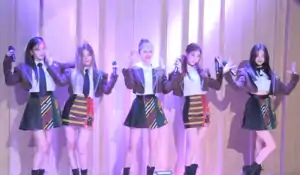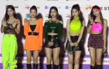 ![]() Itzy на SBS Radio в октябре 2021 года. Слева направо: Йеджи, Лиа, Рюджин, Чэрён ,Юна и Солми | |