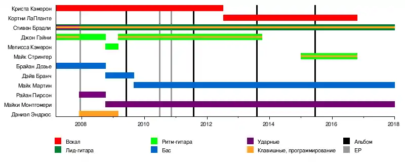 Бывшая вокалистка Криста Кэмерон покинула группу в июле 2012 года в связи с рождением ребёнка[2]. На замену ей пришла Кортни ЛаПланте.