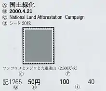 - Ⓐ Название марки на японском (яп. 切手名, англ. ⟨Japanese Names⟩).