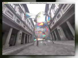 ![]() Скриншот, демонстрирующий преломление в реальном времени с использованием JOGL на Mac OS X | |