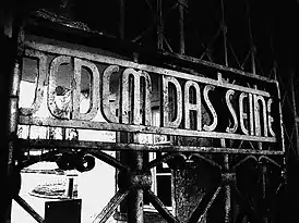 В 1937 году нацисты построили в 7 км от Веймара концентрационный лагерь Бухенвальд. Девиз Jedem das Seine размещался на воротах главного входа. Ворота были спроектированы Францем Эрлихом, бывшим учеником художественной школы Баухауса, который был заключён в этот же лагерь за свои коммунистические взгляды[5][6].