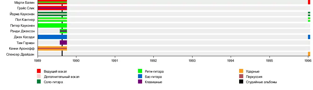 - Грэйс Слик (Grace Slick) — вокал, клавишные, фортепиано, перкуссия (1966—1972, 1989)