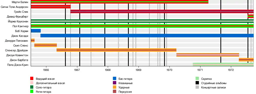 - Марти Балин (Marty Balin) — вокал, ритм-гитара (1965—1971, 1989, 1996; умер в 2018)