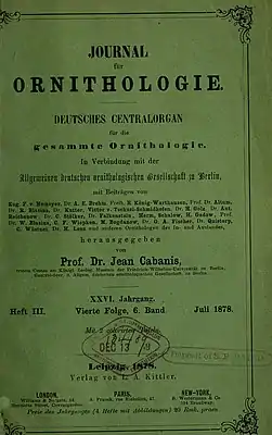 ![]() Обложка «Journal für Ornithologie» 1878 года | |