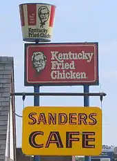 В 1934 году Сандерс приобрёл ещё одну автозаправку, большего размера. Она располагалась на другой стороне дороги, и здесь удалось организовать столовую на шесть столиков[5]. Именно тогда предприниматель начал продавать блюда из жареной курицы[6]. Желая повысить квалификацию, Сандерс прослушал восьминедельный курс управления рестораном в Школе гостиничного хозяйства (англ. School of Hotel Administration) Корнеллского университета[7]. К 1936 году его предприятие стало достаточно успешным для того, чтобы Сандерс мог получить почётное звание полковника Кентукки от губернатора Руби Лаффуна[8]. В 1937 году Сандерс расширил ресторан до 142 мест, а в 1940 году приобрёл придорожный мотель, получивший название «Двор и кафе Сандерса» (англ. Sanders Court & Café)[9].