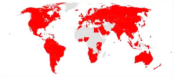 4563 торговых точек KFC расположены в КНР, 4491 — в США, остальные 9821 рассеяны по всему миру[142]. Пункты продажи могут находиться как в собственности концессионеров, так и непосредственно в собственности компании[143]; на долю KFC приходятся 11 % торговых точек[105].